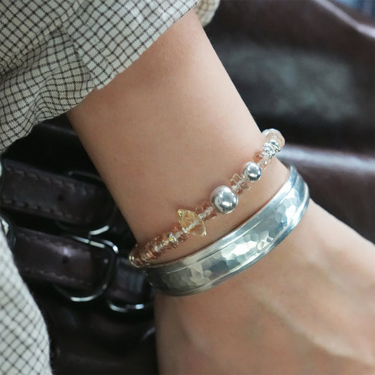 Our carefully curated materials include 14K gold-filled and 925 sterling silver pieces, adorned with sparkling crystals, seed beads, and semi-precious stones.