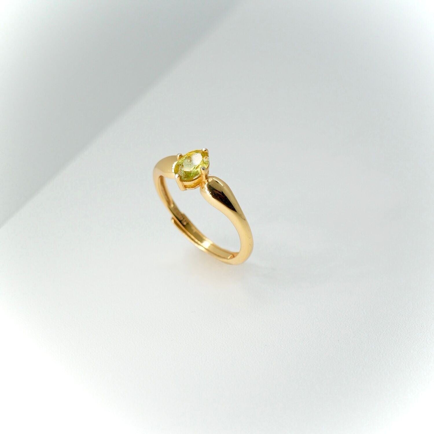 This ring features a beautiful peridot gemstone set in a 18K gold plated silver band.